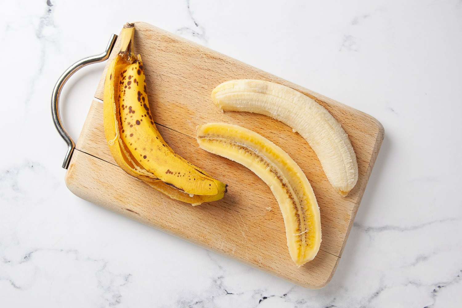 Gỡ bỏ vỏ chuối và cho vào túi hoặc hộp đông lạnh, sau đó để vào ngăn đá. Đừng quên ghi chú ngày tháng và nội dung bên ngoài hộp.