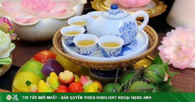 Bộ ấm chén men lam được bày cùng trà sen không chỉ để thưởng thức mà còn thể hiện lòng kính trọng với tổ tiên. Từng tách trà được chắt lọc từ búp sen đầu mùa, mang lại hương vị ngọt ngào, nhắc nhở con cháu về sự giản dị trong cuộc sống.